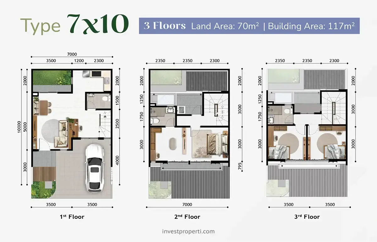 - Tipe 7×10. LT: 70 m2 / LB: 117 m2.