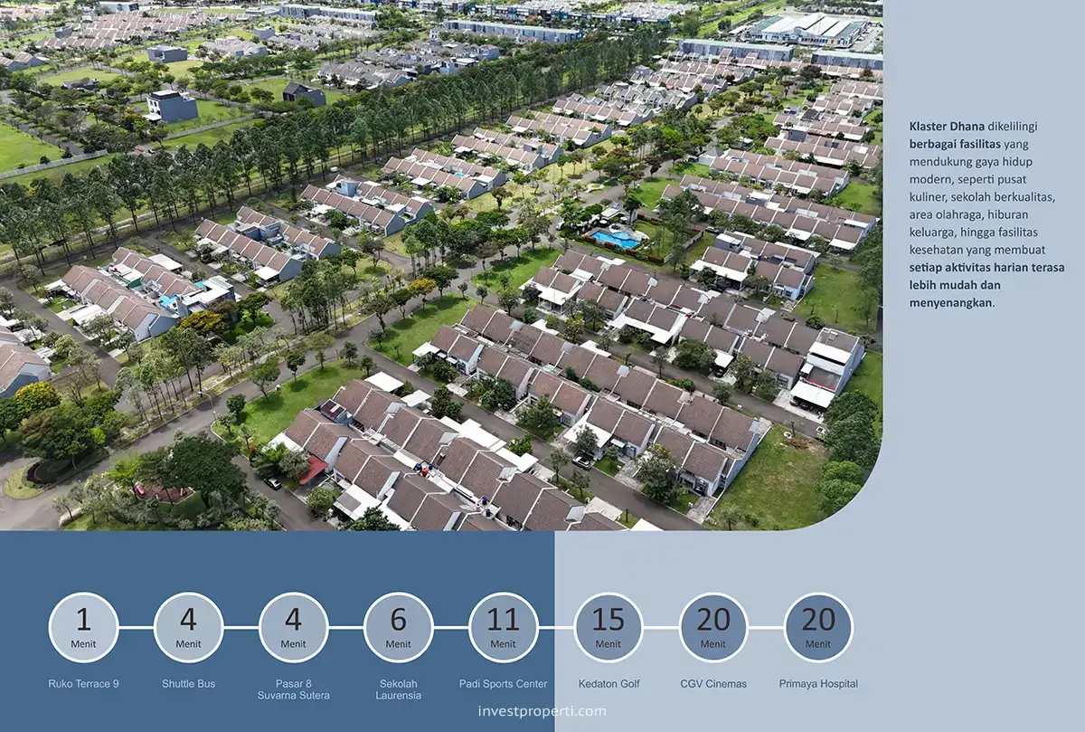Cluster Dhana sebagai salah satu cluster hunian di dalam kawasan Suvarna Sutera, Tangerang merilis penjualan perdana tahapan ke-2 di bulan Desember 2025 pada harga jual rumah mulai dari Rp. 598 jutaan*. Cluster Dhana Suvarna Sutera berada dalam kawasan perumahan superklaster Jati yang telah dibangun dan telah dilengkapi dengan sport lounge, taman bermain anak, jogging track dan beragam fasilitas lainnya.