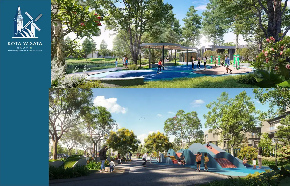 Kawasan Ecovia Kota Wisata menawarkan lingkungan hidup yang ramah lingkungan dan efisien energi, dengan penggunaan material kayu berstandar global untuk menekan emisi karbon.