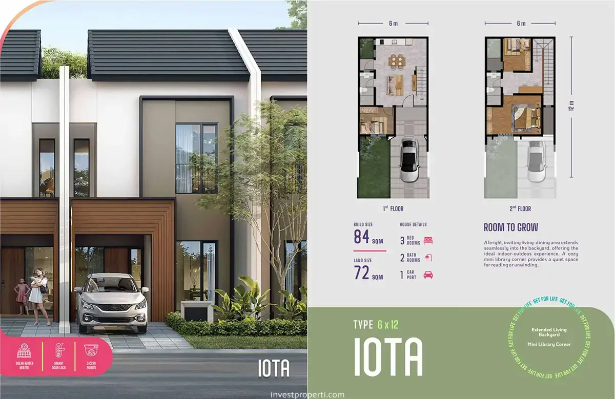 Memiliki dimensi 6×12 rumah Sutera Rasuna tipe Iota menawarkan 2 lantai bangunan dengan 3 kamar tidur, 2 kamar mandi dan 1 carport. Luas tanah 72 m2 dan luas bangunan 84 m2.