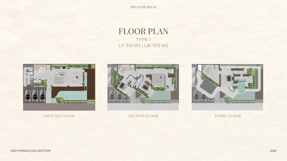 Bagi Anda yang mendambakan kemewahan paripurna, hunian ini hadir dalam dua tipe pilihan berspesifikasi tiga lantai dengan fasilitas sekelas resor bintang lima. Tipe 1 dengan luas tanah 315 m2 (Rp 17,8 Miliar).