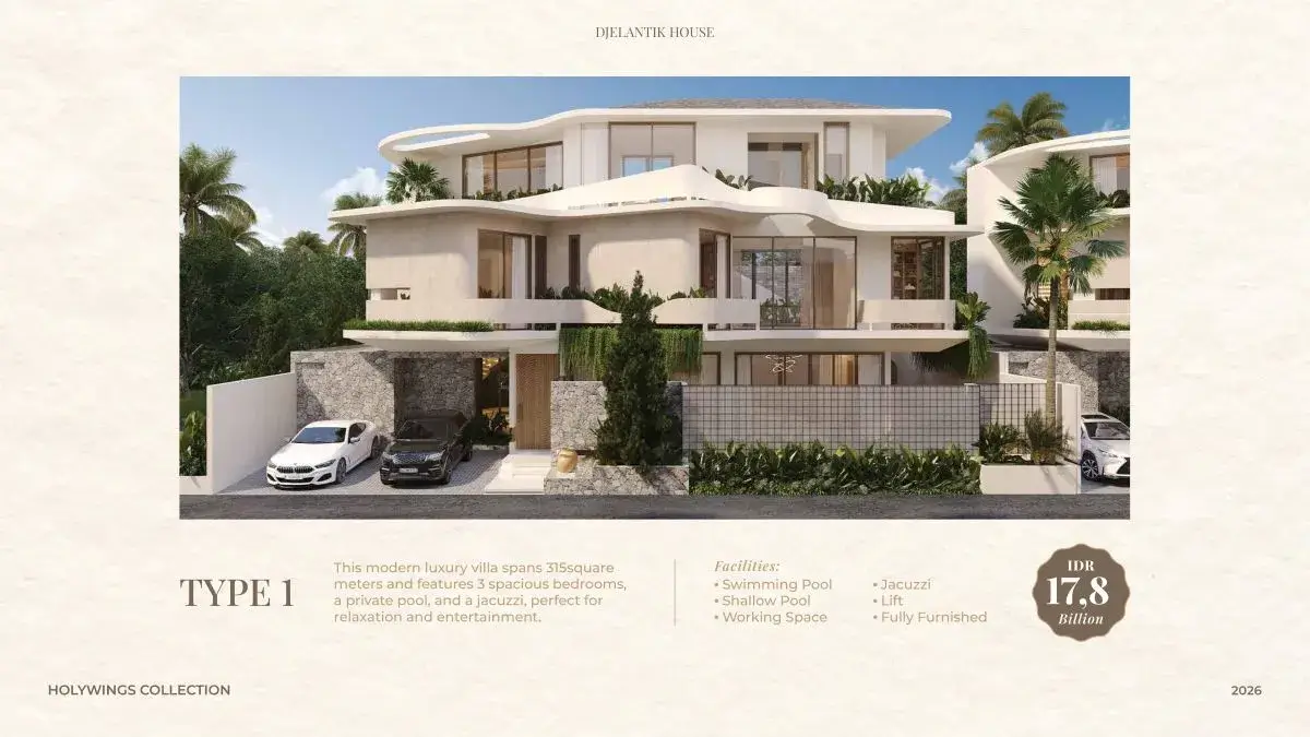 Bali selalu memiliki daya tarik tak tertandingi bagi para pencari properti mewah. Tahun 2026 ini, Holywings Group melalui lini properti terbarunya, Holywings Collection, menghadirkan sebuah mahakarya eksklusif bernama Djelantik House. Nama villaDjelantik HouseLokasiLegian, Badung, BaliPengembangHolywings GroupHarga villamulai Rp. 17 milyaran* Whatsapp sales...Djelantik House Bali: Simbol Baru Kemewahan Eksklusif dari Holywings Collection