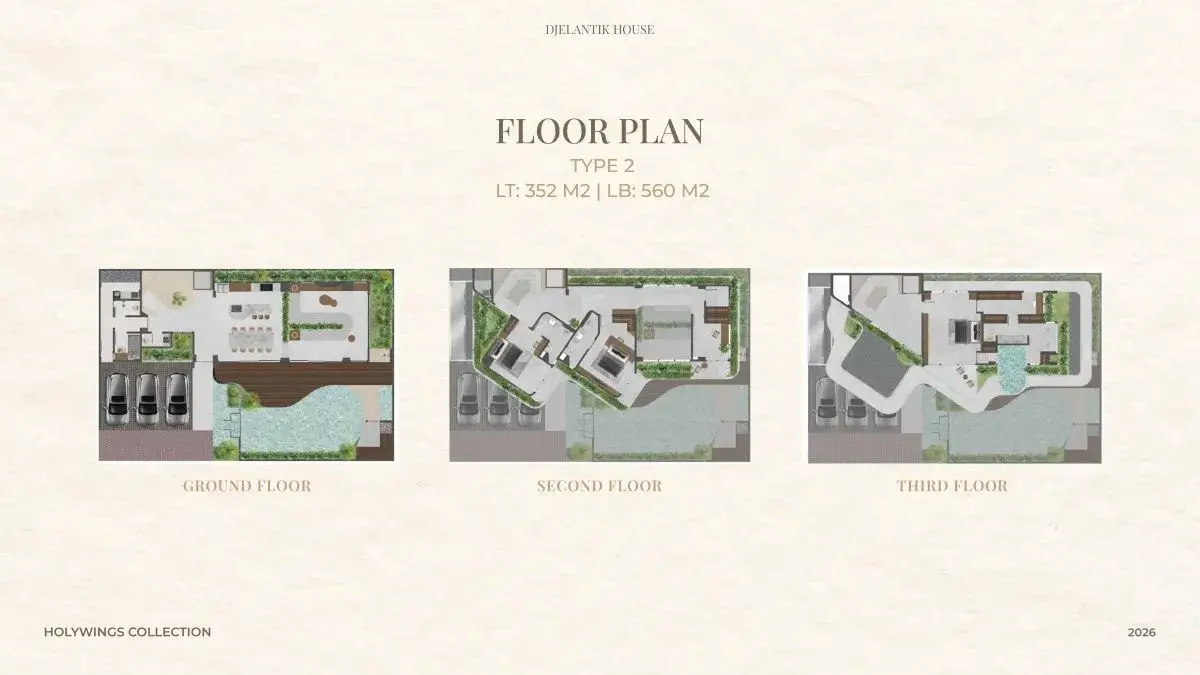 Tipe 2 dengan luas tanah 352 m2 (Rp 19,8 Miliar) sama-sama dilengkapi dengan 3 kamar tidur berdesain mewah, kolam renang pribadi, jacuzzi, ruang kerja (working space), hingga fasilitas lift pribadi. Khusus untuk unit Tipe 2, Anda akan dimanjakan dengan tambahan fasilitas relaksasi eksklusif berupa sauna dan cold plunge.