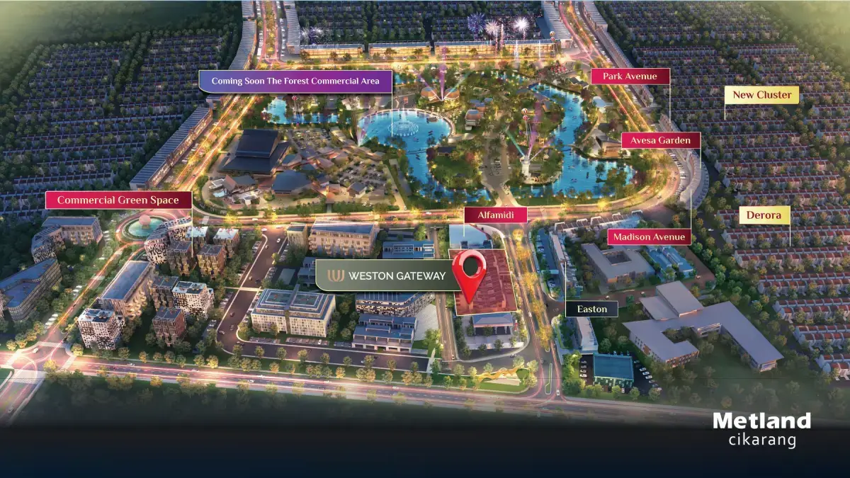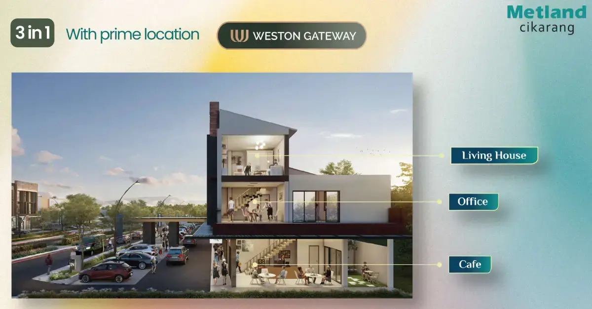 Ruko terbaru Metland Cikarang Weston Gateway dijual sangat terbatas, hanya sebanyak 30 unit ruko saja. Menawarkan potensi pengunjung besar dimana berada di jalan boulevard dengan trafik tinggi, kawasan Weston Gateway memiliki area drop-off tersendiri, signage yang jelas, commercial plaza dan yang paling menonjol adalah jalan pedestrian yang luas, menawarkan kenyamanan pengunjung kawasan ruko Weston Gateway.