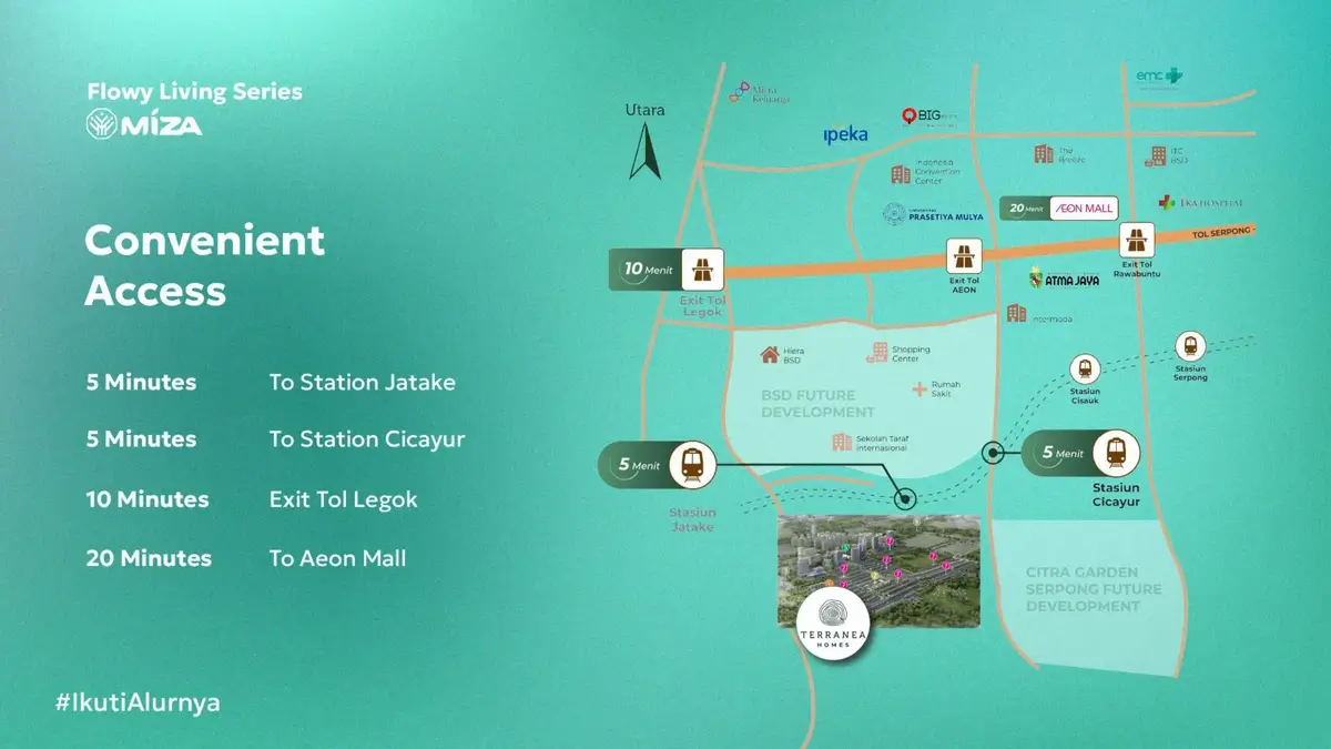 Cluster Miza di Terranea Homes Serpong resmi diluncurkan awal 2026 oleh Goldland Group. Perumahan kontemporer Terranea Homes dikembangkan di area seluas 35 hektar yang mudah dijangkau dari pintu tol Legok, stasiun KRL Jatake, serta kawasan BSD City. Cluster Miza menghadirkan 2 pilihan rumah baru yaitu Amora dan Livora.